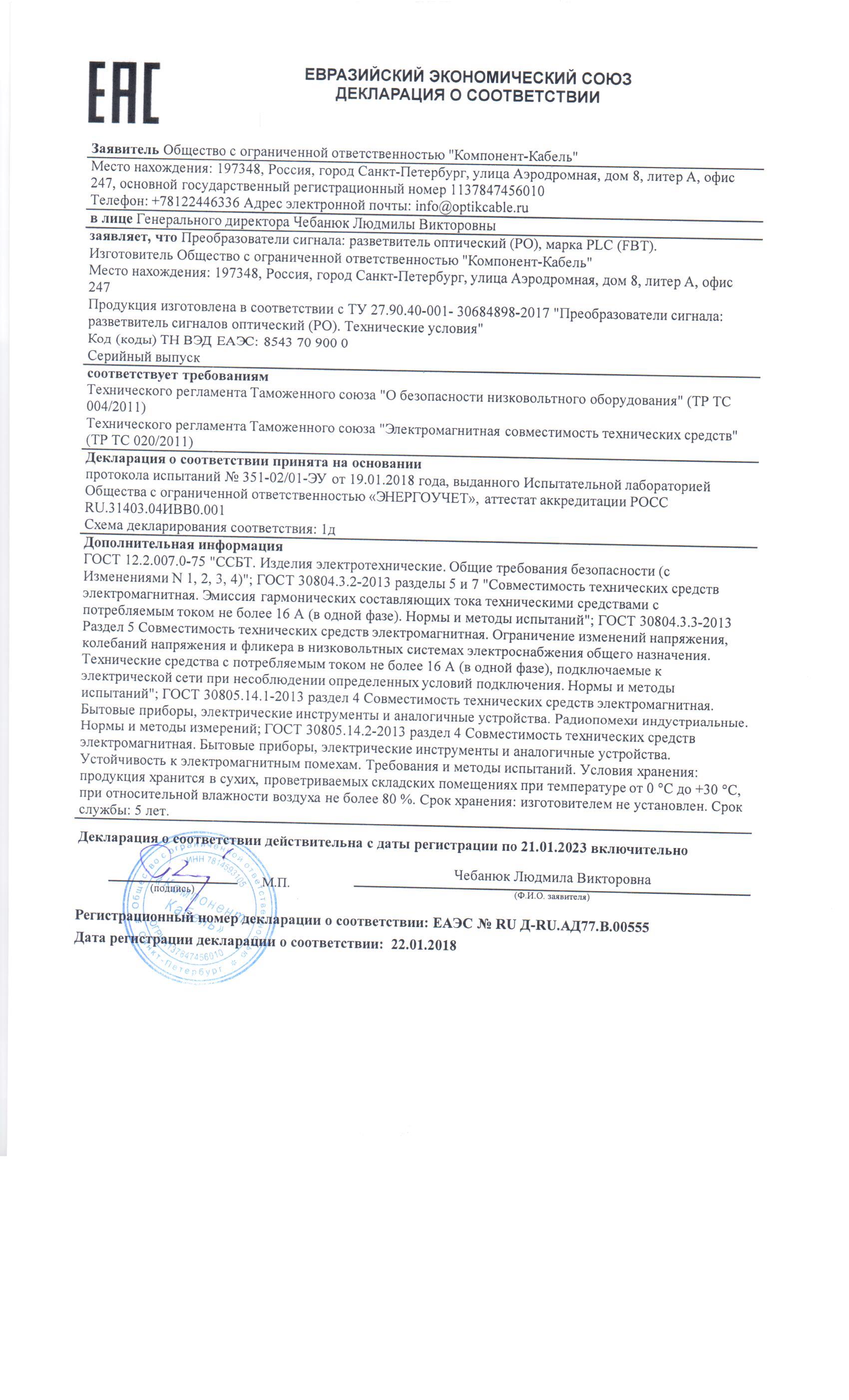 Декларация о соотвествии на скалыватель FC-6S